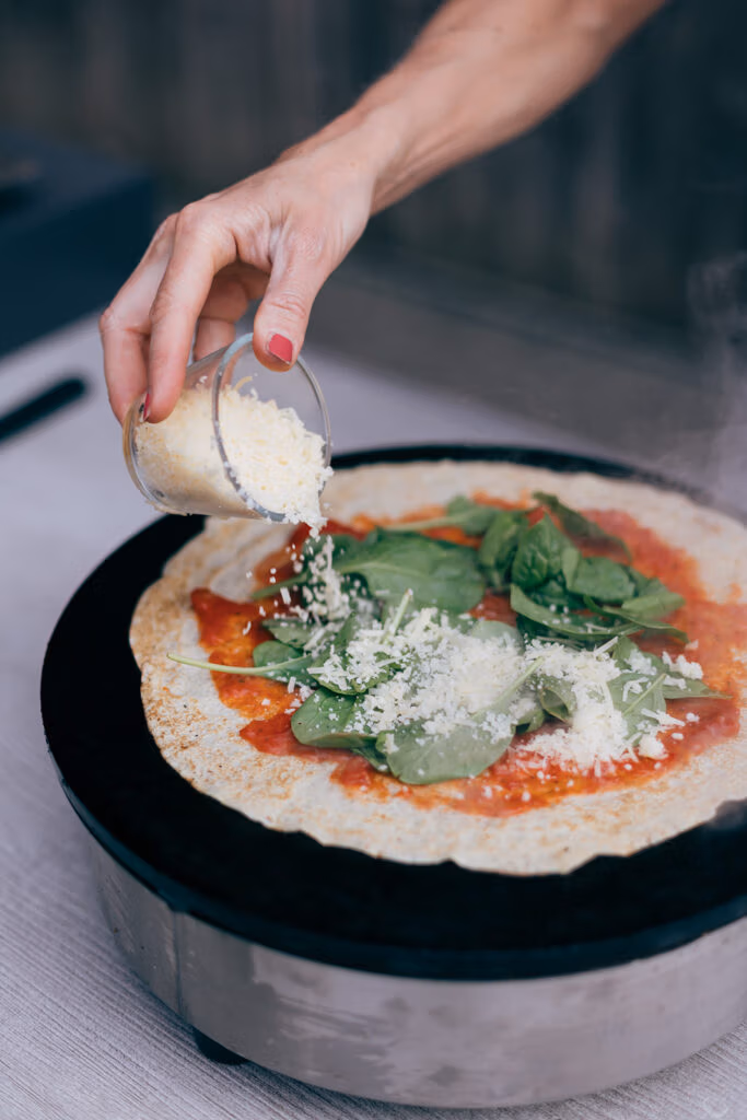 Herzhafte Crêpes mit z.B. Tomatensugo à la Nonna mit Käse, indisches Linsendal, Spinat mit Käse…